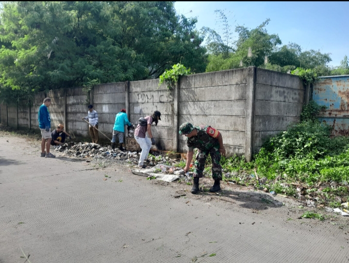 Babinsa dan Warga Kompak Karbak Bersihkan Sampah