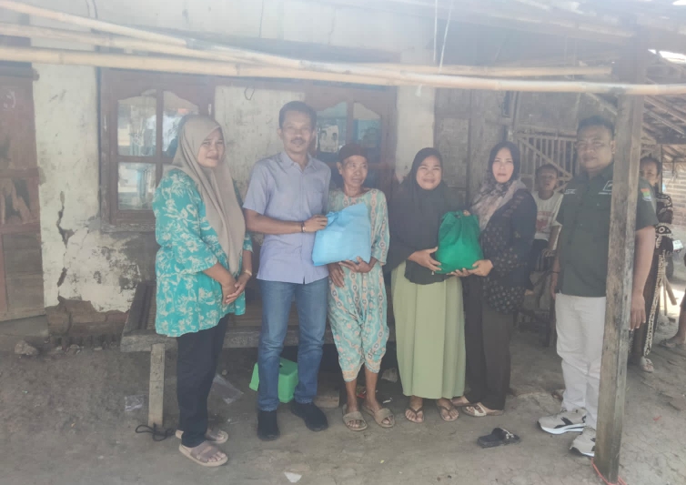 Di akhir kunjungan, Camat Eka memberi bantuan sembako untuk meringankan beban Johari dan keluarganya. (Gass)