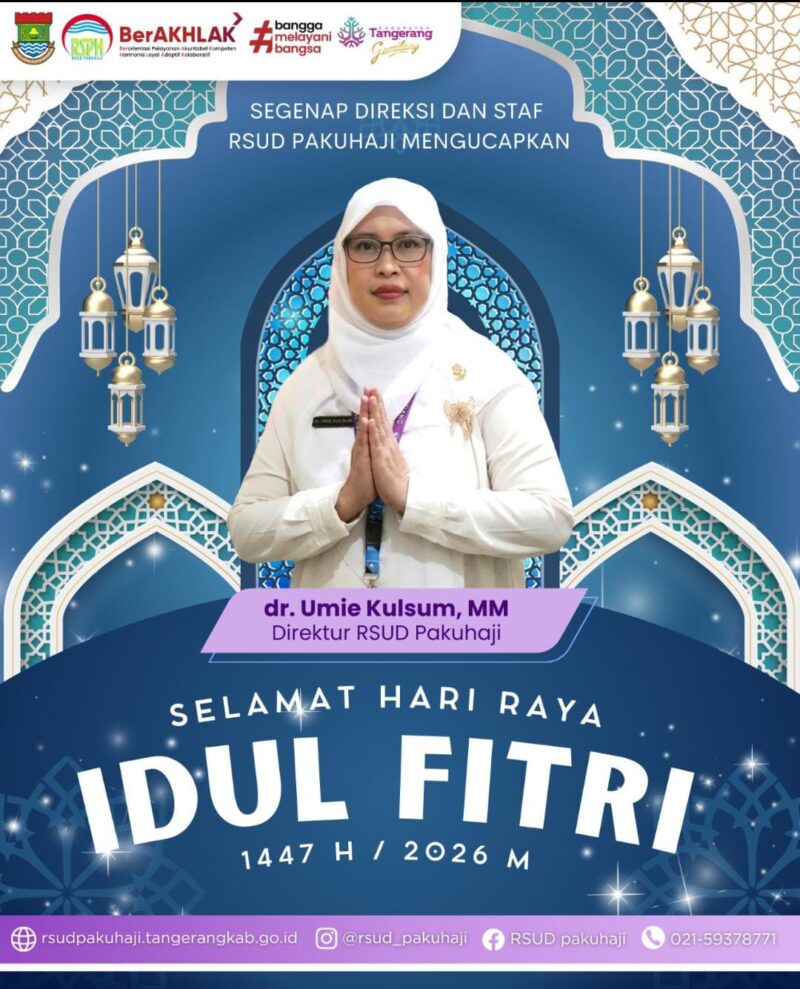 PAKUHAJI – Menjelang hari kemenangan Idulfitri 1447 H, Direktur RSUD Pakuhaji, dr. Hj. Umie Kulsum, MM, menyampaikan ucapan selamat hari raya kepada seluruh masyarakat Kabupaten Tangerang, khususnya warga di wilayah utara.