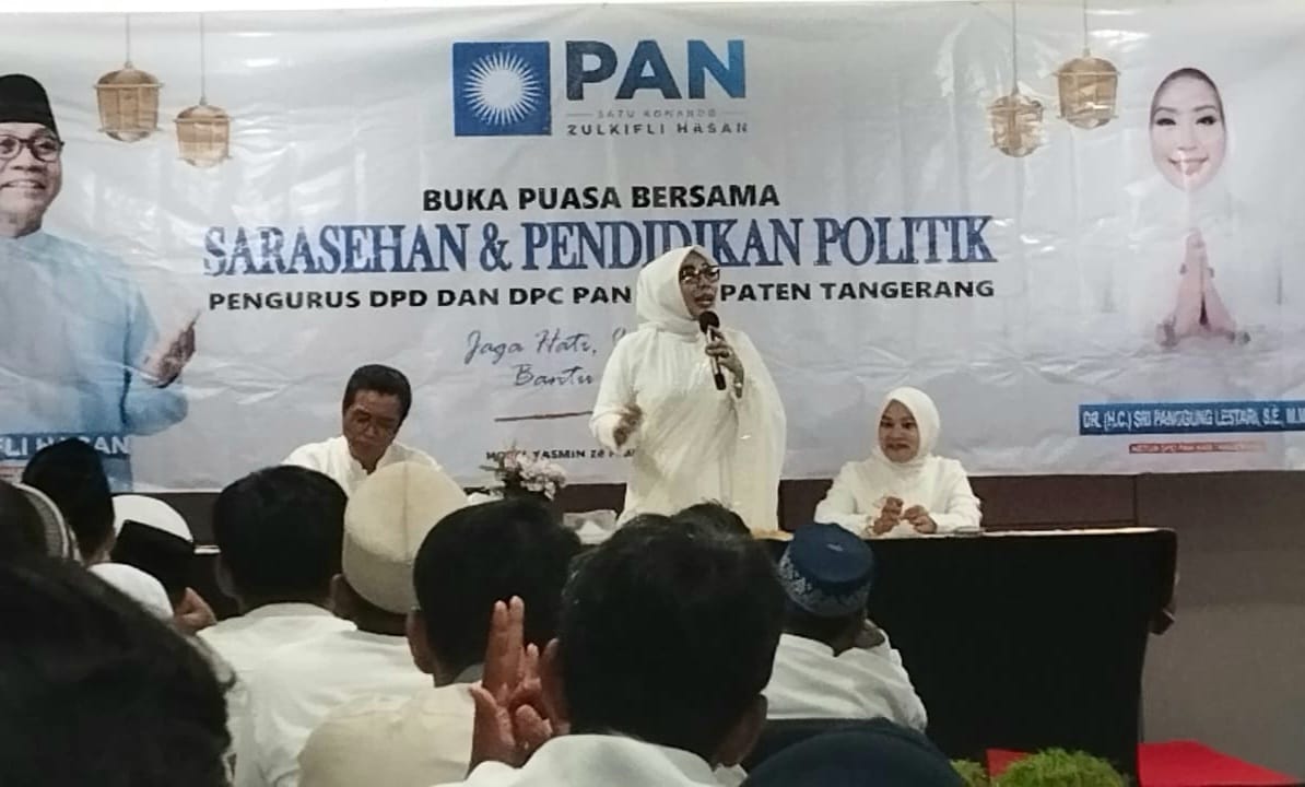 DR (HC) Sri Panggung Lestari, SE., M.M Ketua DPD PAN Kabupaten Tangerang menyampaikan kegiatan Buka Puasa Dan Sarasehan Pendidikan Politik 2026 intinya lebih kepada silaturahmi antar pengurus dan angggota, di samping bimbingan teknik dan pengukuhan kader
