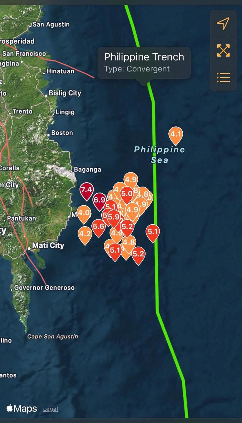 Gempa kedua dengan magnitudo 6,7 mengguncang lepas pantai wilayah Mindanao selatan, hanya beberapa jam setelah gempa magnitudo 7,4 melanda lokasi yang sama, sehingga memicu peringatan tsunami dan evakuasi warga pesisir.