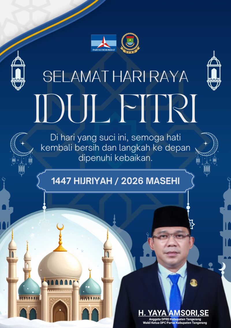 TANGERANG – Anggota DPRD Kabupaten Tangerang dari Fraksi Demokrat, H. Yaya Amsori, SE, menyampaikan ucapan selamat Hari Raya Idulfitri 1447 Hijriah kepada seluruh masyarakat, khususnya warga Kabupaten Tangerang.