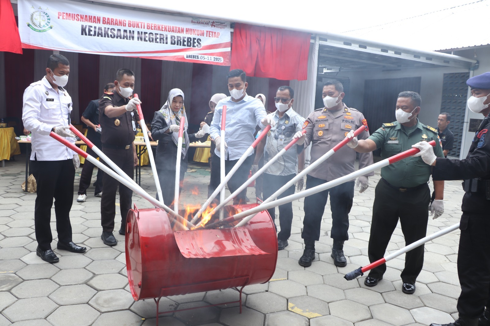 “Pemusnahan barang bukti ini merupakan bentuk komitmen Kejaksaan Negeri Brebes dalam menegakkan hukum serta memastikan setiap barang bukti hasil tindak pidana benar-benar dimusnahkan sesuai ketentuan. Ini juga sebagai bentuk transparansi kepada masyarakat,” kata Eryana.