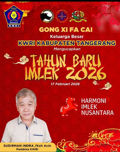 “Kami segenap keluarga besar KWRI Kabupaten Tangerang mengucapkan Selamat Tahun Baru Imlek 2026 kepada Bapak Sudirman Indra selaku Pembina kami. Semoga di Tahun Kuda Api ini, kesehatan, kebahagiaan, dan keberuntungan selalu menyertai beliau serta keluarga,” ujar Heriyanto dalam keterangannya.