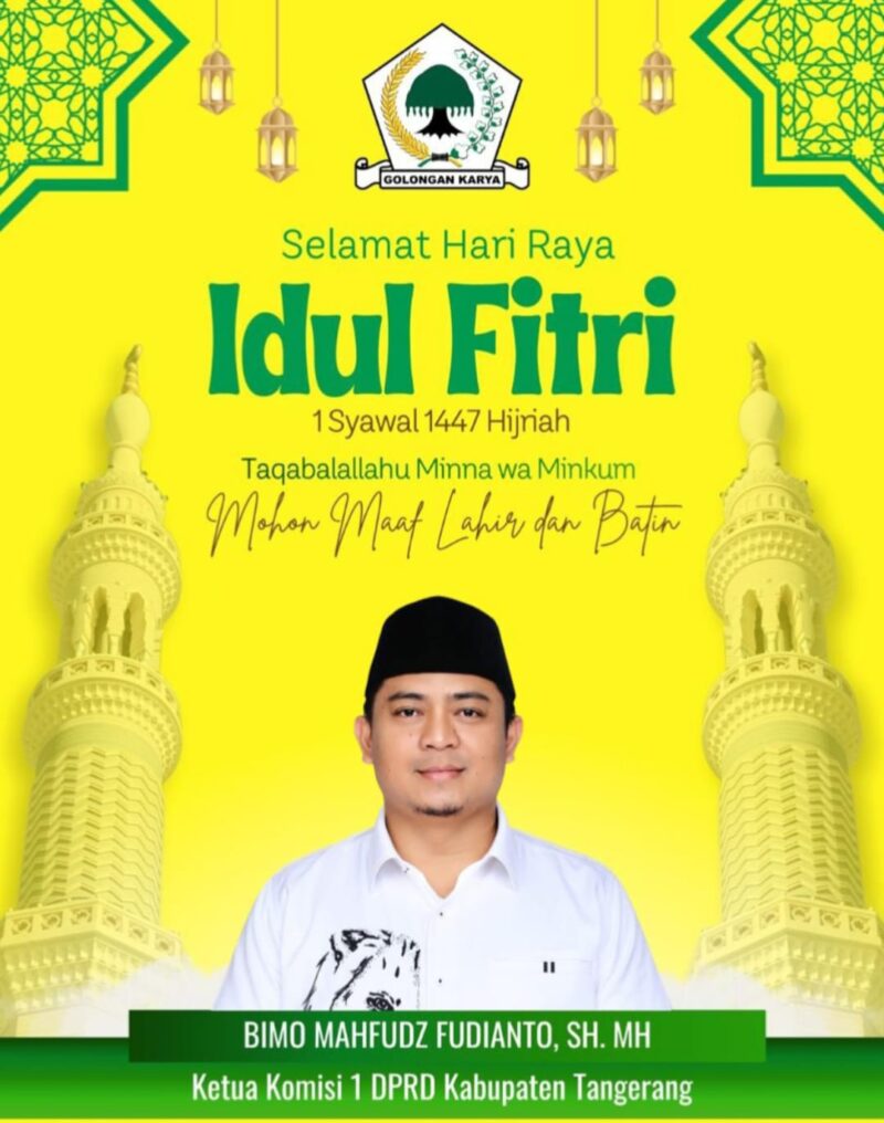 ‎Kabupaten Tangerang – Ketua Komisi I, Bimo Tiger, menyampaikan ucapan selamat merayakan Hari Raya Idulfitri 1447 H kepada seluruh umat Muslim di Indonesia.