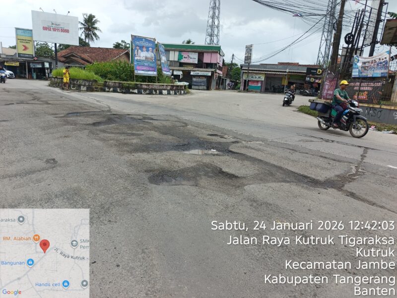Jambe – Kondisi infrastruktur jalan di wilayah Kabupaten Tangerang kembali menjadi sorotan tajam. Belum genap beberapa bulan sejak dilakukan pengaspalan ulang, ruas Jalan Raya di sekitar Bundaran Kutruk, Kecamatan Jambe, kini dilaporkan mengalami kerusakan berat.