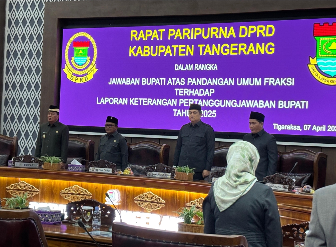 Jawaban tersebut disampaikan dalam Rapat Paripurna yang digelar di Gedung DPRD Kabupaten Tangerang pada selasa 07 April 2026 yang dipimpin oleh Wakil ketua 1 H.Kholid Ismail.