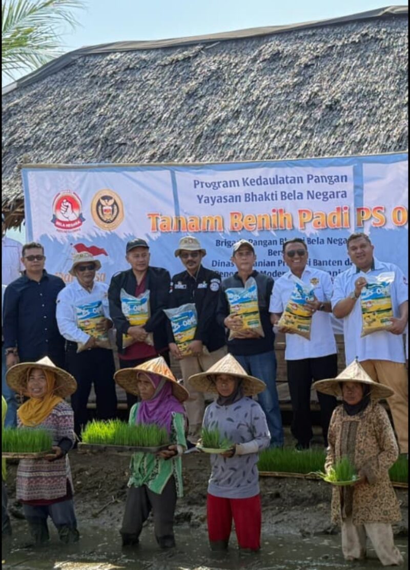 Pandeglang, Lensabumi.com – Yayasan Bhakti Bela Negara menggelar kegiatan penanaman benih padi unggul jenis PS 08 di Kampung Mataram, Desa Sukarame, Kecamatan Carita, Kabupaten Pandeglang, Provinsi Banten, pada Jumat (24/4/2026).