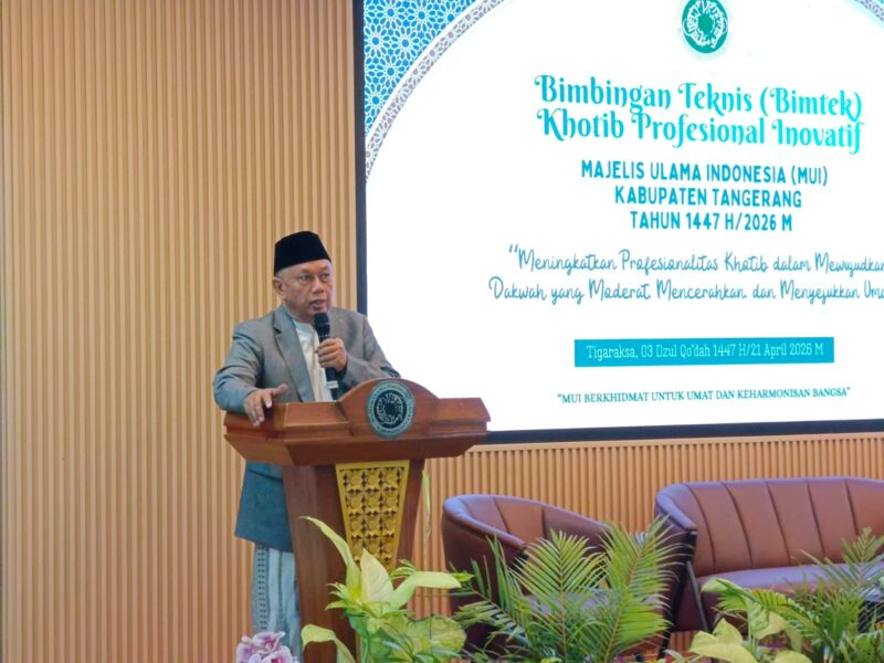 ‎Kabupaten Tangerang – Majelis Ulama Indonesia (MUI) Kabupaten Tangerang menggelar kegiatan Bimbingan Teknis (Bimtek) Khotib Profesional dan Inovatif di Aula Gedung MUI Tigaraksa. 03 Dzul Qo’dah 1447 H/ Selasa 21 April 2026 Masehi.