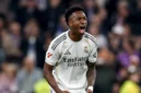 Vinicius Junior mencetak dua gol (brace) untuk Los Blancos dalam derby ibu kota tersebut, dengan gol lainnya dilesakkan oleh Federico Valverde.